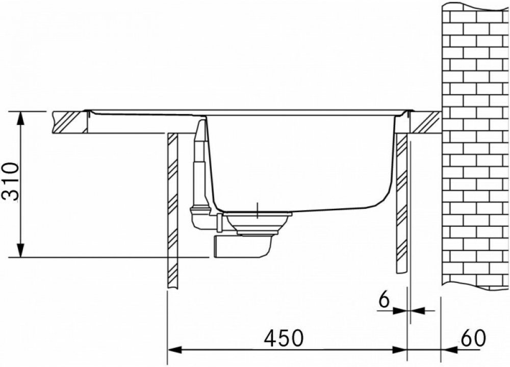 Důležité upozornění: Dřez je dodáván bez předvrtaných otvorů. Otvor pro baterii je nutné vytvořit při montáži. Baterie bude mírně nakloněna vzhledem k vyspádované odkapové ploše.