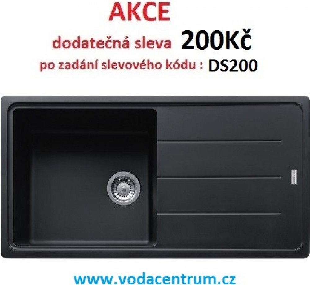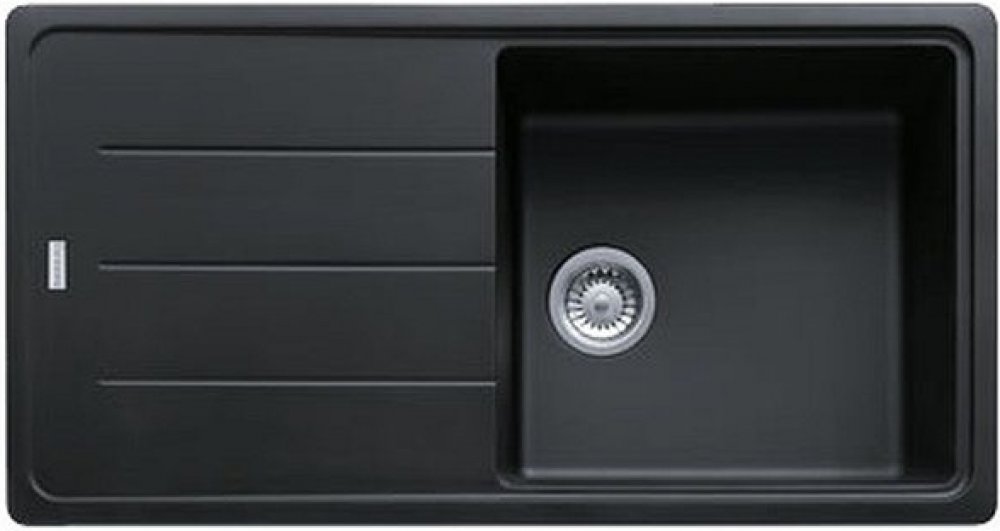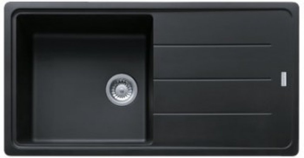 Granitový dřez odkapem Franke BFG 611 v barvě Onyx. Dřez určený pro škříňku od 600 mm, jeho hloubka je 200 mm. Velmi prostorná mycí vana. Antibakteriální provedení. Otvory pro baterii a ovládání výpusti připravíme dle požadavku.