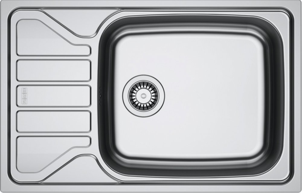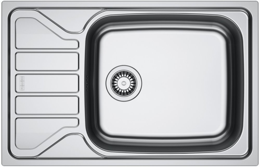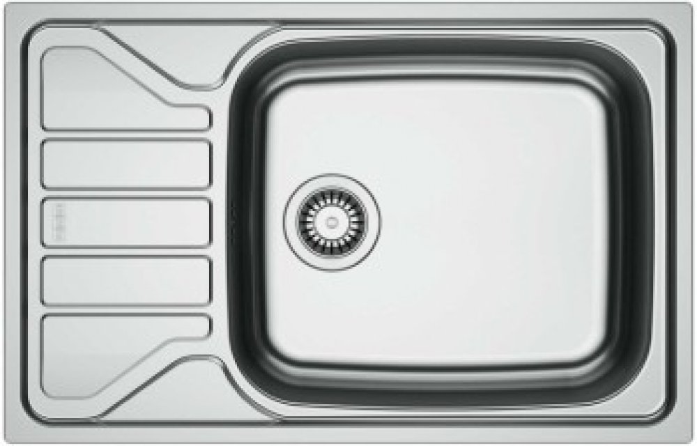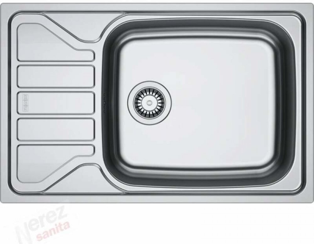 Nerezový dřez Flash. Cena zahrnuje: Sítkový ventil 3 1/2“ s přepadem. Sifon pro úsporu místa 6/4“ s odbočkou na myčku nádobí.