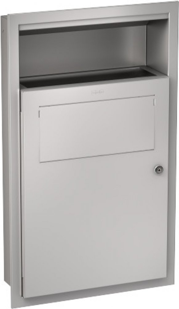 Odpadkový koš na dámské vložky a drobné odpadky pro montáž pod omítku, nerezová ocel, povrch jemný matový, tloušťka materiálu 0,8 mm, objem cca 6 litrů, s integrovaným držákem na pytle, samozavírací víko, s integrovanou schránkou na hygienické papírové sáčky, může být kombinován se zásobníkem na hygienické sáčky RODX191, vložkový zámek s univerzálním klíčem Franke, včetně vrutů z nerezové oceli a ...