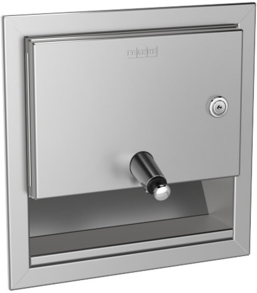 Dávkovač tekutého mýdla - montáž pod omítku - zahnutý přední kryt - válcový zámek s univerzálním Franke klíčem - tlačítko vpředu - včetně šroubů a hmoždinek - obsah 1 l - rozměry: 243 x 241 x 86 mm - tloušťka materiálu: 0,8 mm - materiál: 1.4301 chromniklová ocel 18/10 - povrch: hladký