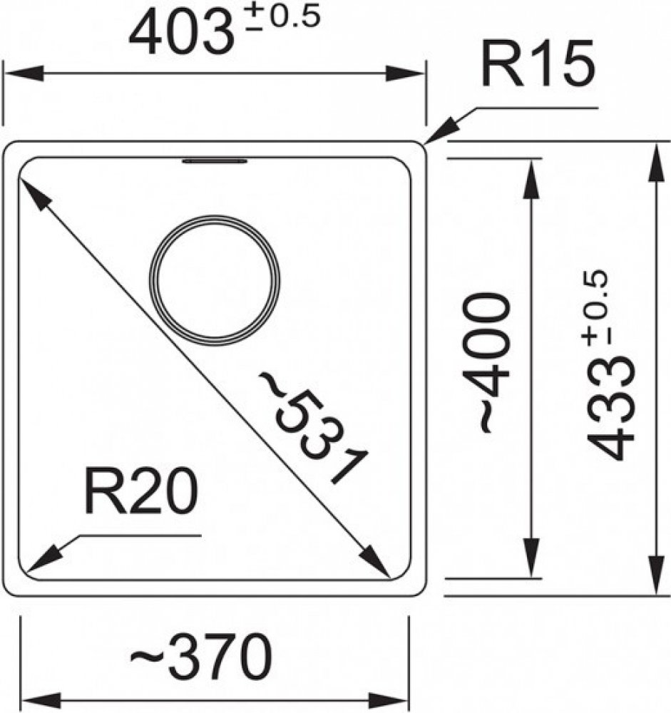 40.3 cm 20 cm 370 x 400 mm černé granitové Franke symetrický 450 mm spodní matný