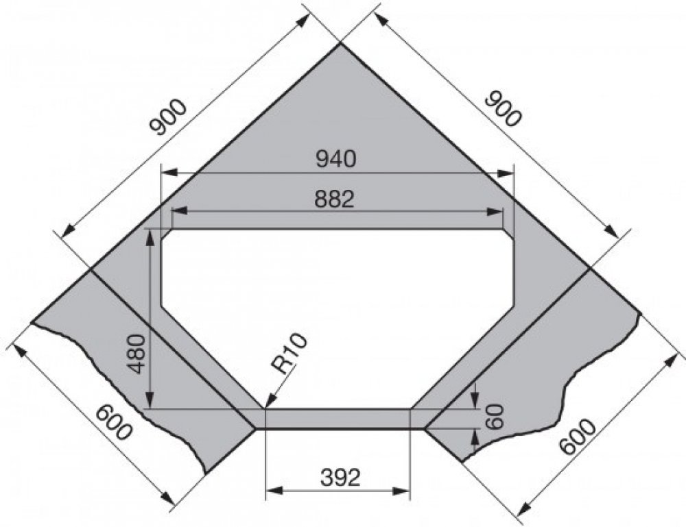 Vhodný pro rohovou skříňku 900 × 900 mm nebo 1050 × 1050 mm
