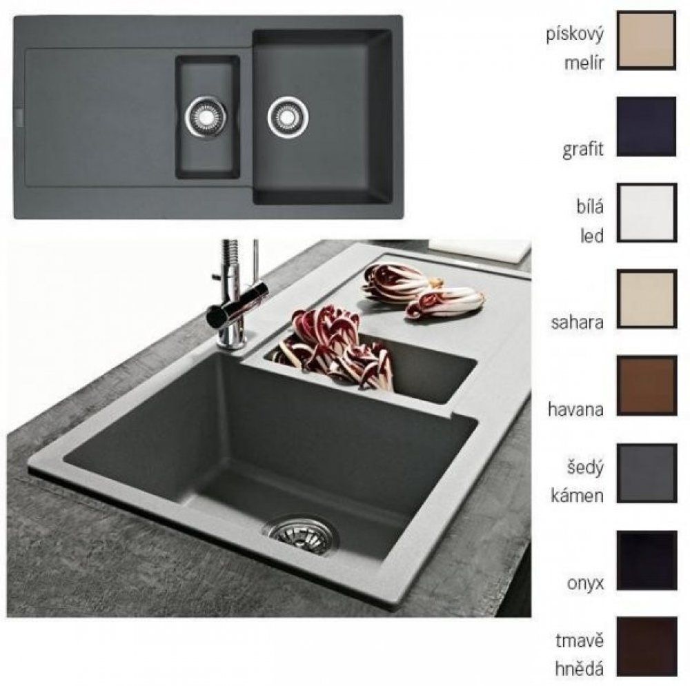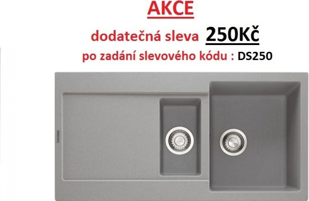 Granitový dřez s odkapem, vaničkou a velkou odkládací plochou Franke MRG 651 v barvě Šedý kámen. Dřez určený pro škříňku od 600 mm, jeho hloubka je 200 mm. Rozměr 970 x 500 mm. Otvory pro baterii a ovládání výpusti připravíme dle požadavku.