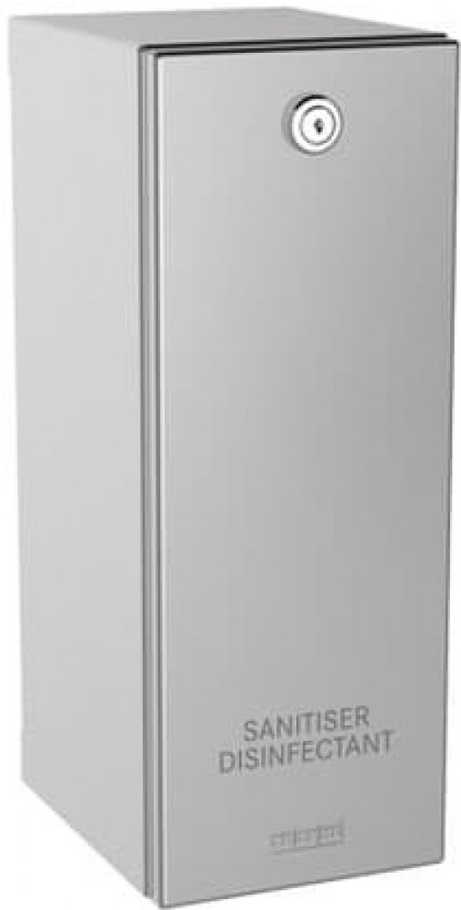 RODAN, dávkovač dezinfekčního prostředku, k montáži na stěnu, nerezová ocel se saténovým povrchem, tloušťka materiálu 0,8 mm, skládaný přední kryt, cylindrický zámek se standardním klíčem Franke, kontrolní okénko na boku, přední kryt s aplikačním listem, vhodné pro dezinfekci a pleťové vody, vč. 800 ml doplňovací nádrž, s plastovou tažnou pákou, včetně montážního materiálu.