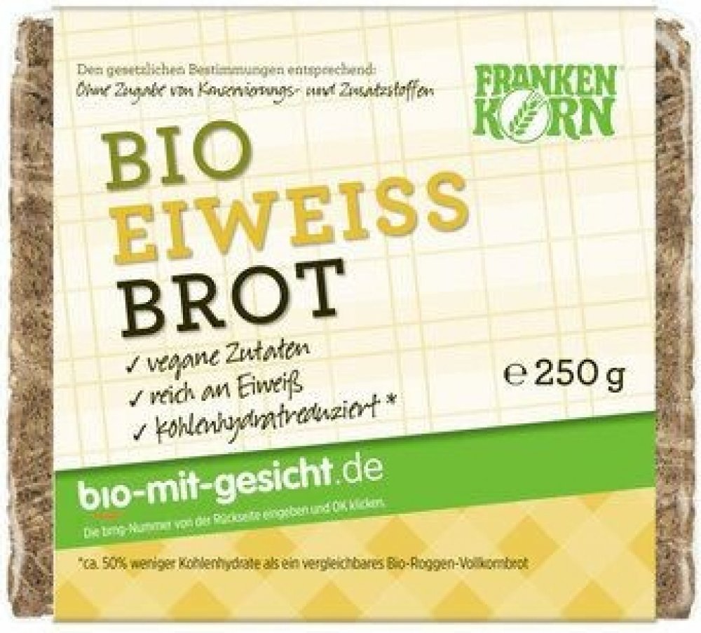 Bio proteinový chléb Frankenkorn se slunečnicovými semínky a lněným semínkem je vynikající. Má příjemnou chuť žitného kvásku. Vzhledem k tomu, že je obohacený o bílkoviny a má snížený obsah sacharidů, je ideální k večeři.
