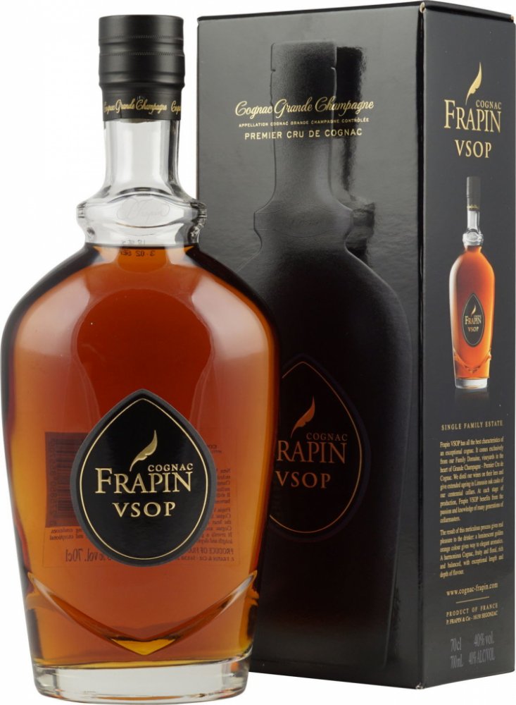 Frapin VSOP pochází výhradně z oblasti Grande Champagne, označované jako Premier Cru de Cognac. Rodinný dům Frapin patří mezi nejstarší koňakové domy s historií sahající až do roku 1270. Díky vlastním vinicím a tradičním postupům patří ke špičce koňaků určených pro znalce.