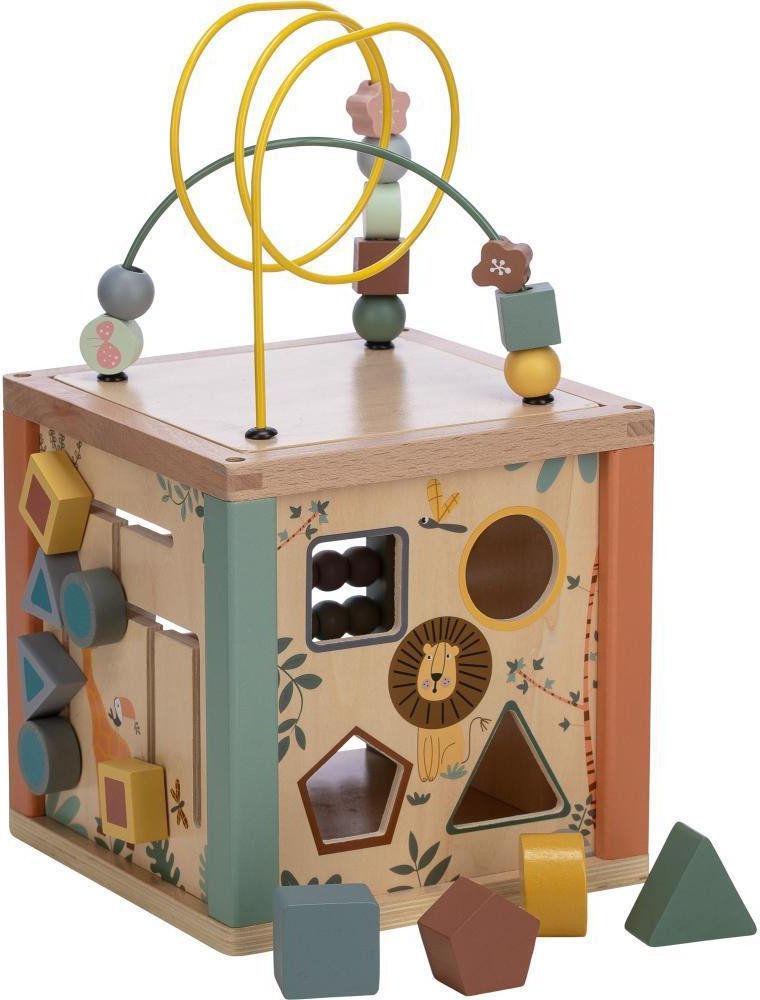 Didaktická kostka velká didaktická dřevěná kostka podporuje jemnou motoriku a logické myšlení dítěte obsahuje labyrintovou hru, vkládání tvarů, počítadlo a další didaktické prvky vhodná pro děti od 18 měsíců rozměry produktu: 36 x 21 x 21 cm materiál: dřevo hmotnost: 1,5 kg