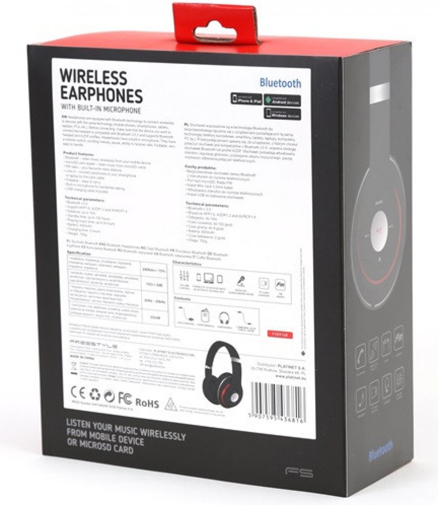 bezdrátová 24 Ohm 8 h TWS – True Wireless Stereo k mobilním telefonům 20000 Hz 20 Hz Platinet 103 dB/mW přes hlavu (náhlavní) USB plná bílá 150 g