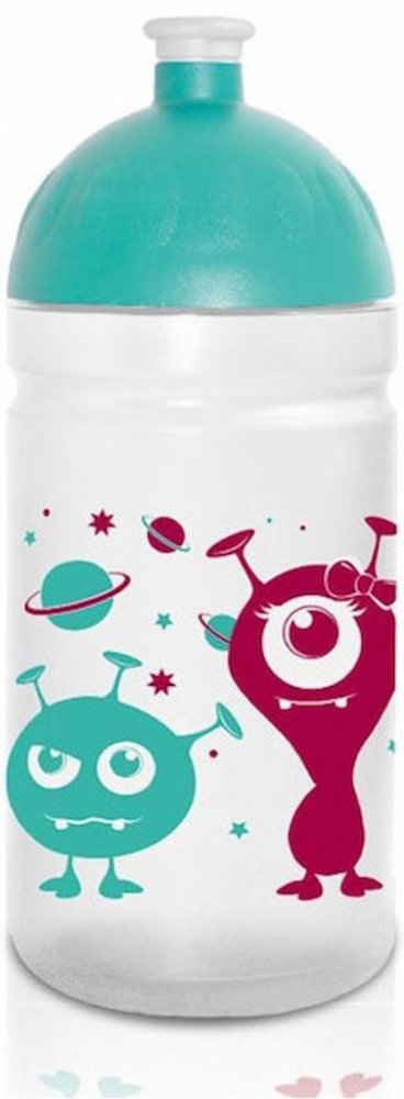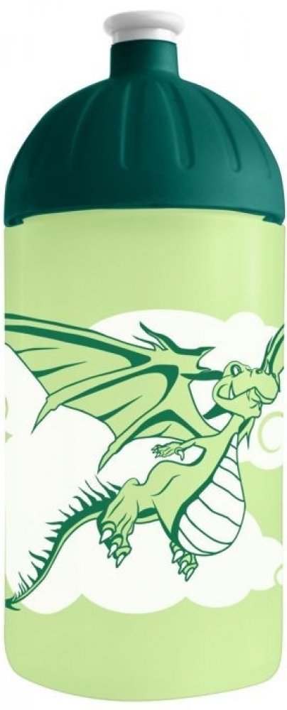 Láhev na pití Delfín 0,5 l. Láhev má na sobě obrázek dvou delfínů, víčko i poutko jsou modré, uzávěr černý. Objem láhve je 500 ml. Je vyrobena z tritanu. Ten nemění chuť nápojů. Má velmi jednoduché a pohodlné otevírání. Láhev má na sobě nakreslenou rysku pro dodržování pitného režimu. Láhev můžete mýt v myčce na nádobí. Je možné ji použít i na teplé nápoje, teplo ale neudrží. Na láhvi se nachází i odnímatelný popruh na upevnění nebo pohodlné držení v ruce.