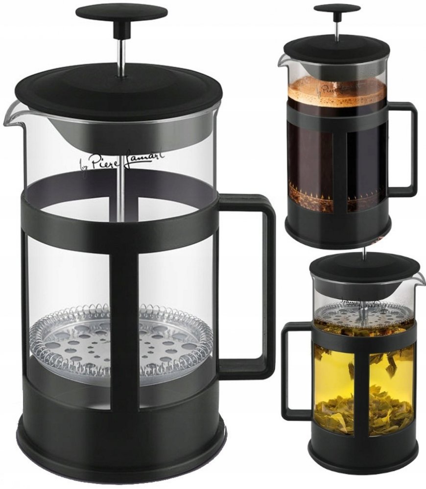 - Konvice obsahuje nerezové stlačovací sítko pro čaje a mletou kávu.