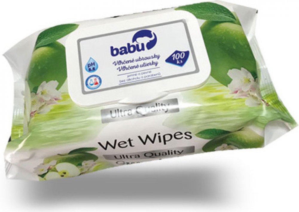 Hygienické vlhčené ubrousky v balení 100 kusů s vůní Jablka. Sametově jemné a pružné. Neobsahují alkohol a parabeny. Výborně čistí, hydratují a vyživují pokožku. Vhodné pro celé tělo i obličej - nedráždí. Vhodné pro děti.