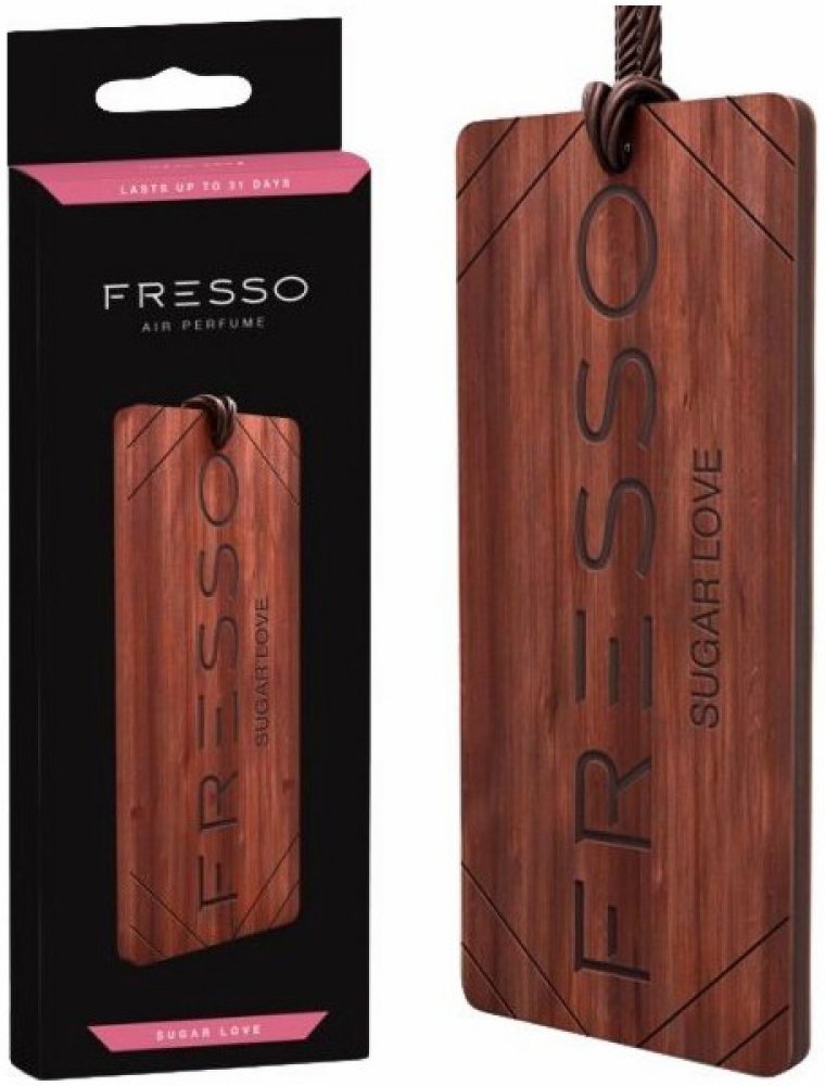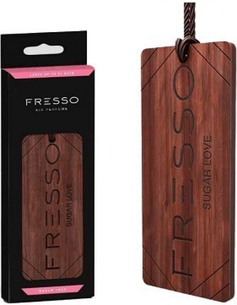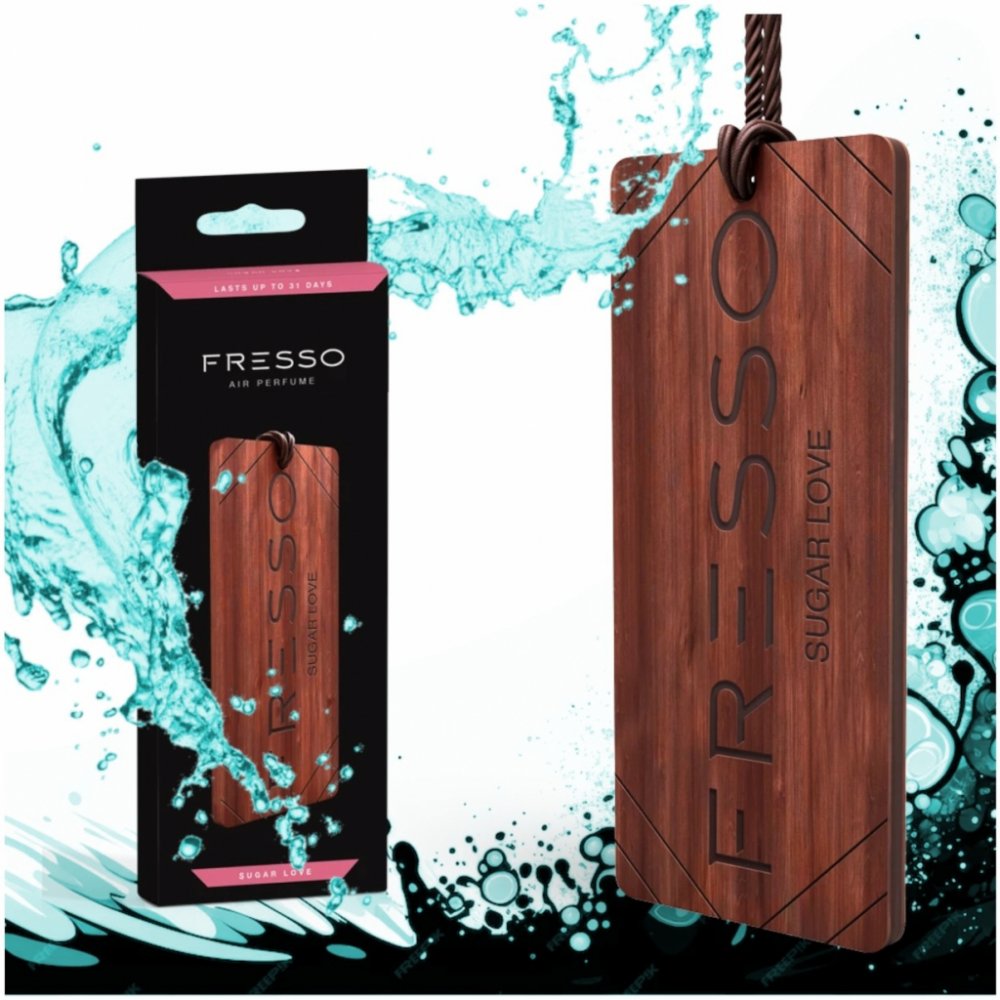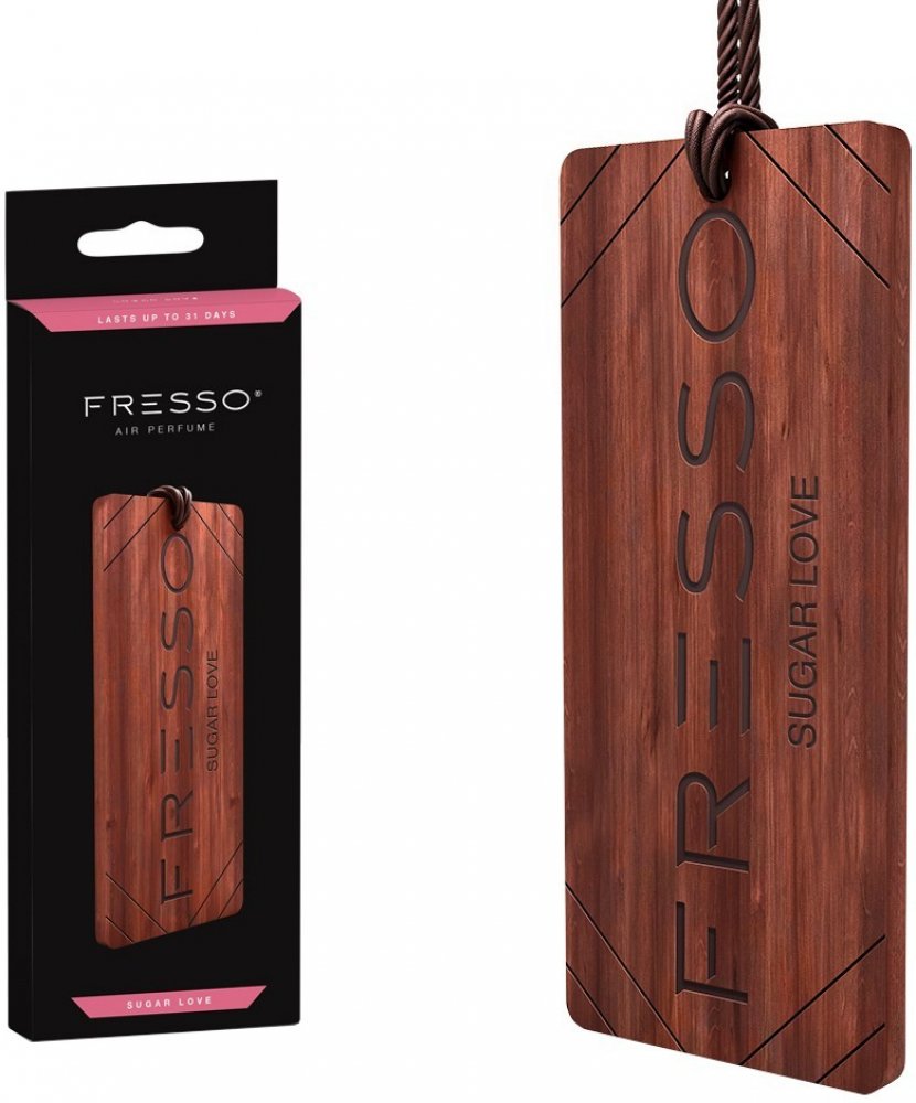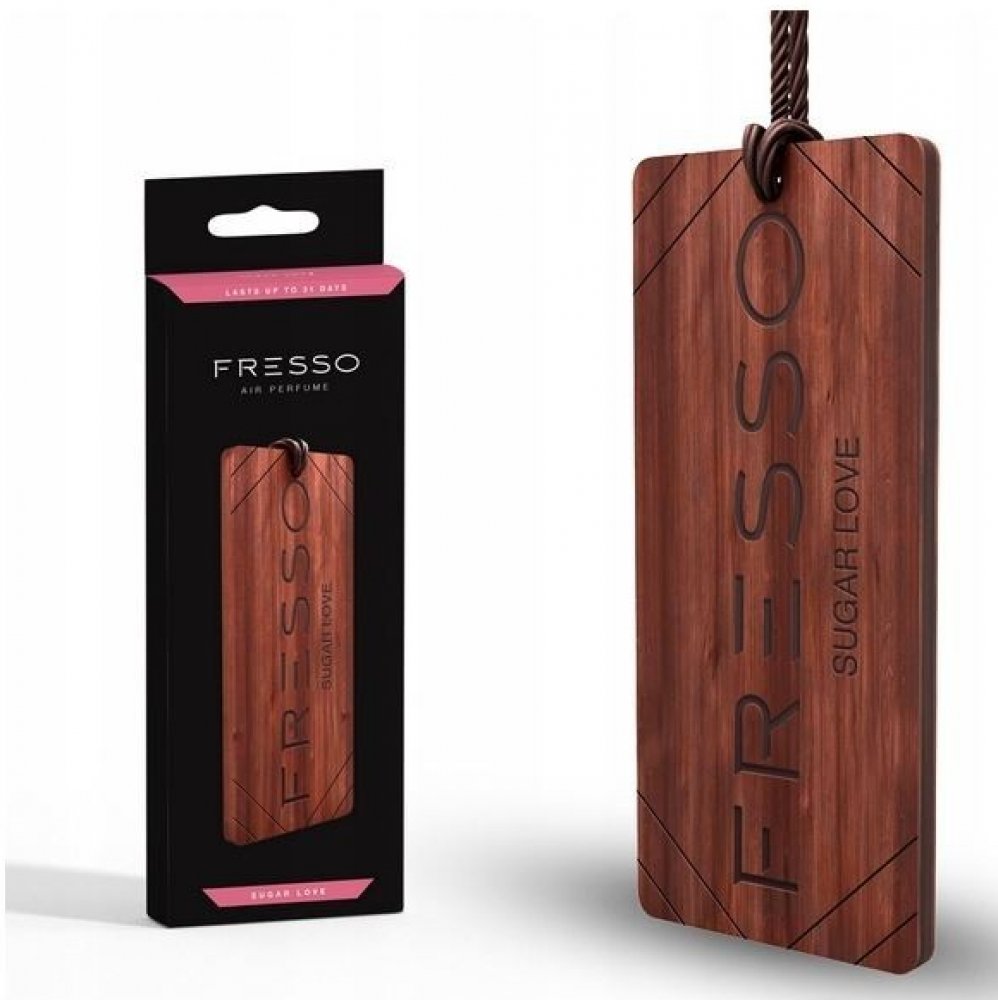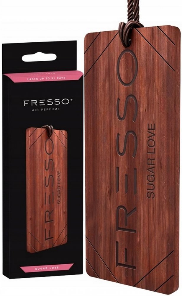 Dřevěný přívěsek Fresso s vůní "Sugar Love" Elegantní dřevěný přívěsek s vůní "Sugar Love", který se dá pověsit za koženou pletenou šňůrku na zpětné zrcátko v autě. Jedná se o sofistikované příslušenství, které dokonale ladí s jakýmkoliv interiérem vozu. Přívěsek Fresso vás překvapí, protože má vyjímečnou podobu a jeho vůně je trvanlivá a důmyslně složená. Vzhledem k přírodnímu původu se přívěsky mírně liší vzhledem a zároveň vytvářejí výjimečnou atmosféru ve vašem autě. Jedinečný recept vůní Fresso je založen na hodnotných složkách, které jsou geniálně sestaveny. Tato vůně pak dokáže vonět až 31 dnů. Jemné vonné tóny Fresso se uvolňují průběžně a kontrolovaně. Nehrozí ze začátku žádná přehnaně intenzivní vůně, která je mnohdy až obtěžující, jak tomu často bývá u ostatních vůní do auta. Vůně zůstává stabilní téměř po celou dobu použití přívěsku. Rozměry přívěsku jsou 115 x 50 mm. Vůně Fresso "Sugar Love" "Sugar Love" se vyznačuje sladkou vůní kombinace exotického santalového dřeva, tóny vanilky a mandlí. Celek je obohacený ovocným květinovým nádechem v podobě hrušky a pomerančového květu ochuceného růžovým pepřem. Jemná směs jantaru a sladké růže dodává eleganci a teplo. Každý den se můžete obklopit vůní, která vyzařuje pozitivní energii.