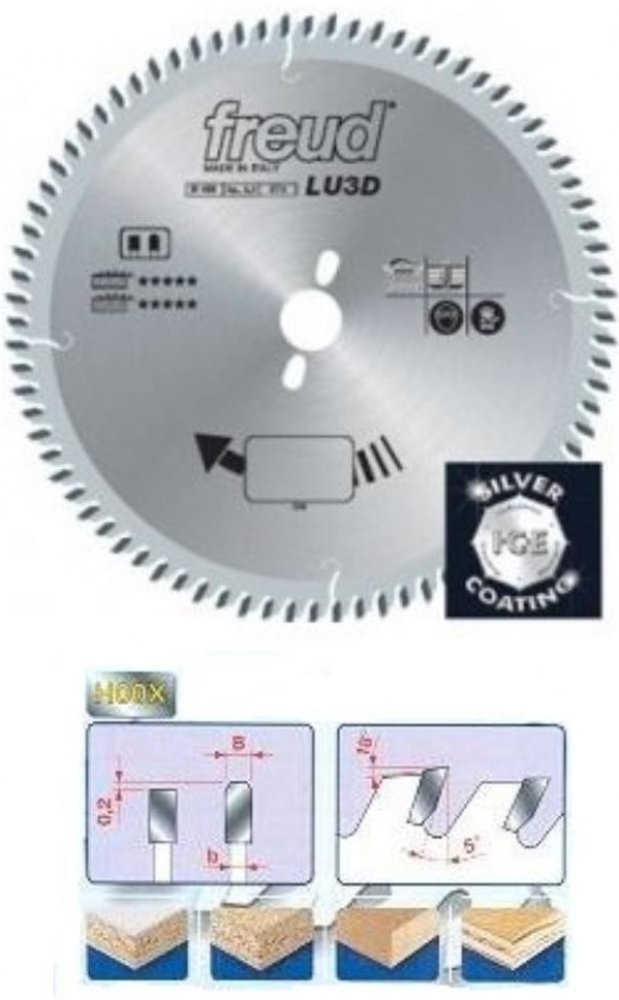 Pilový kotouč Freud na laminát 300 x 3,2 x 30 Z96 #Pilový kotouč na řezání pro řezání laminátu, MDF, dřevotřísky. #Ozkoušený pilový kotouč s lichoběžníkovým ozubením pro řezání oboustranně laminovaných desek (LTD), MDF a dřevotřísky. #Nejběžnější velikost pro skládačkové pily. #Pro kvalitní oboustranný řez je nutné použít předřez. #Determinováno.