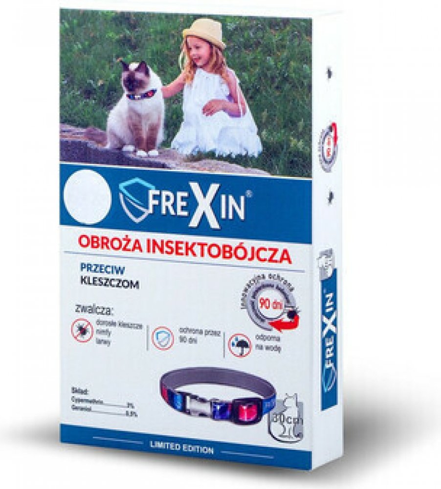 Regulace délky až do 30 cm umožňuje přizpůsobit obojek obvodu krku psa. Produkt je určen k hubení blech a klíšťat u koček a koťat starších 3 měsíců. Insekticidní obojek pro kočky značky Frexin chrání zvíře před blechami a klíšťaty po dobu až 90 dnů od jeho použití. Výrobek je určen pro běžné použití. Inovativní polymer umožňuje pomalé uvolňování účinné látky, což zajišťuje dlouhodobou ochranu před napadením ektoparazity.