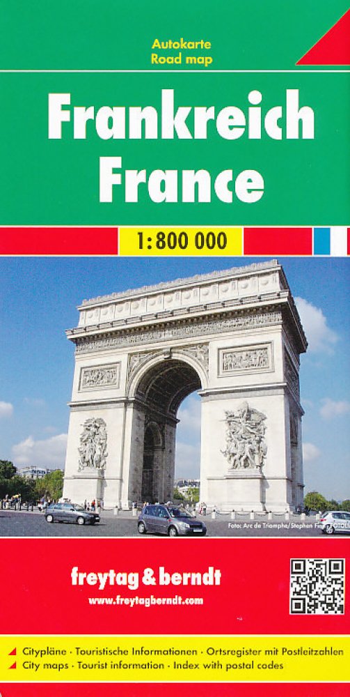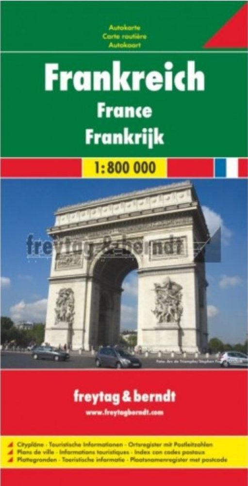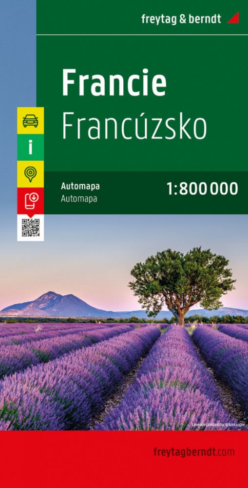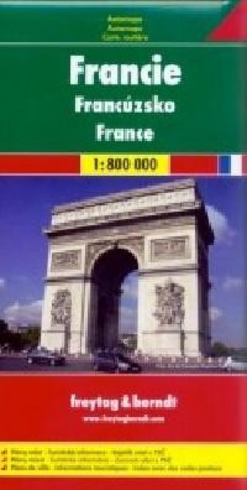 Oboustranná automapa Francie. Základem motoristického obsahu je podrobná silniční síť s kilometráží, čísly silnic, zvýrazněny jsou placené úseky, nebezpečné klesání a stoupání. Zaznačeny jsou přírodní a kulturní zajímavosti, pamětihodnosti, kempy. Reliéf je zakreslen pomocí stínování. Přiložena brožura s rejstříkem sídel a plánem 4 městských center (Paříž, Lyon Marseille, Monaco), 10ti jazyčná legenda včetně češtiny. Vydání: Z důvodu časté aktualizace map Vám dotaz na rok vydání rádi zodpovíme telefonicky či emailem. Děkujeme za pochopení.