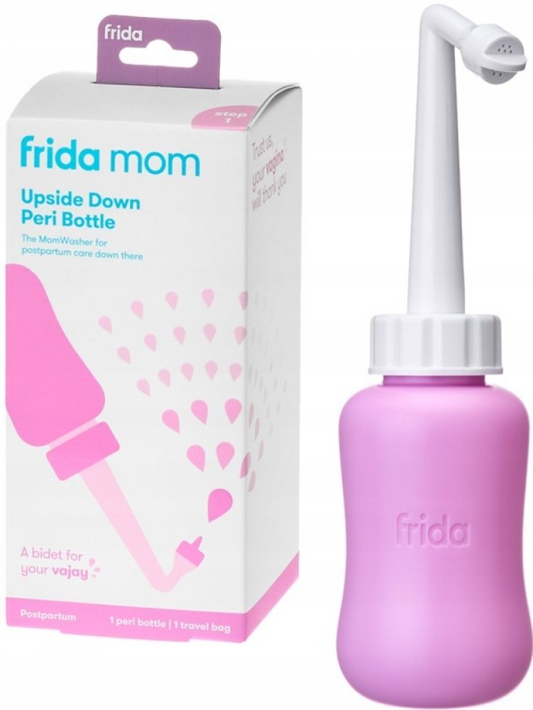 Frida Mom intimní sprškaLáhev, která funguje vzhůru nohama! Frida Mom Intimní sprška je navržená tak, aby ji bylo možné použít ve směru ze zdola nahoru. Tedy ve chvíli, kdy sedíte na toaletě! Nemusíte se obávat žádné složité manipulace, rozlité vody všude okolo vás, mokrého prádla a podobně. Díky zahnutému hrdlu se voda dostane přesně tam, kam je potřeba.Frida Mom Intimní sprška pojme necelých 300 ml, není tedy nijak veliká a snadno ji schováte do kabelky nebo kojící tašky. Její součástí je také nepropustný a neprůhledný sáček, který láhev ochrání proti nečistotám a vaši kabelku před vodou. Nikdo nepozná, co je uvnitř, a to se může rozhodně hodit, až vyrazíte poprvé s miminkem mezi lidi a budete se potřebovat očistit na toaletě mimo domov.Intimní sprška se bude hodit i maminkám po císařském řezu. Pomůže vám očistit „Vagi“ a okolí jizvy bez nutnosti předklánění, které vytváří tlak na spodní část bříška. To se hojí a nemělo by být vůbec namáháno.„Trust us, your vagina will thank you.“