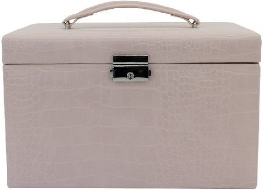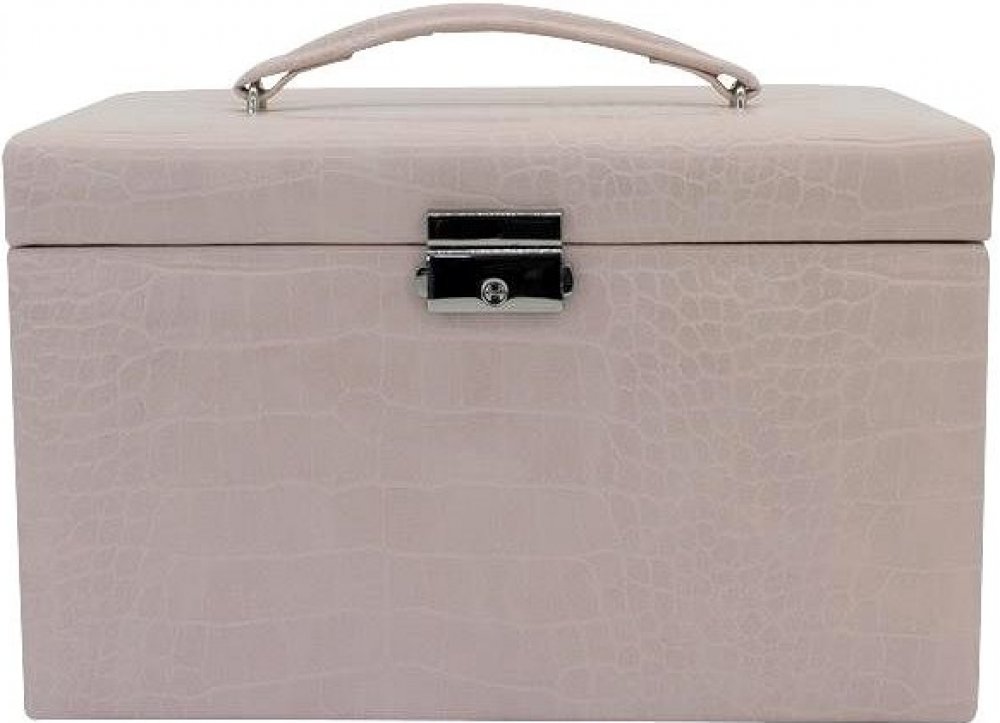 Šperkovnice FRIEDRICH LEDERWAREN je ideální volbou pro bezpečné uložení vašich cenných klenotů a doplňků. Byla zhotovena ze syntetické kůže, proto nabízí elegantní vzhled i snadnou údržbu. Součástí šperkovnice ve formě kufříku je i praktické ucho, což oceníte při častém přenášení vašich pokladů. Díky možnosti uzamčení bude obsah šperkovnice chráněn před cizími osobami. Má 4 patra, tudíž budete mít prostor na všechny prstýnky, náramky i náhrdelníky. Všechny šperky si můžete přehledně uspořádat, jelikož šperkovnice FRIEDRICH LEDERWAREN obsahuje navíc 3 zásuvky. Zásadní vlastnosti šperkovnice FRIEDRICH LEDERWAREN Caiman 20135-4 Šperkovnice FRIEDRICH LEDERWAREN je perfektním řešením pro uložení vašich cenností Má podobu kufříku Je vyrobena ze syntetické kůže Uzamykatelný mechanismus brání nežádoucímu vniknutí S uchem pro pohodlné nošení Uvnitř najdete 4 patra Disponuje také 3 zásuvkami Šperkovnice FRIEDRICH LEDERWAREN má rozměry 16 × 24 × 15 cm (vך×h) Její barva je béžová