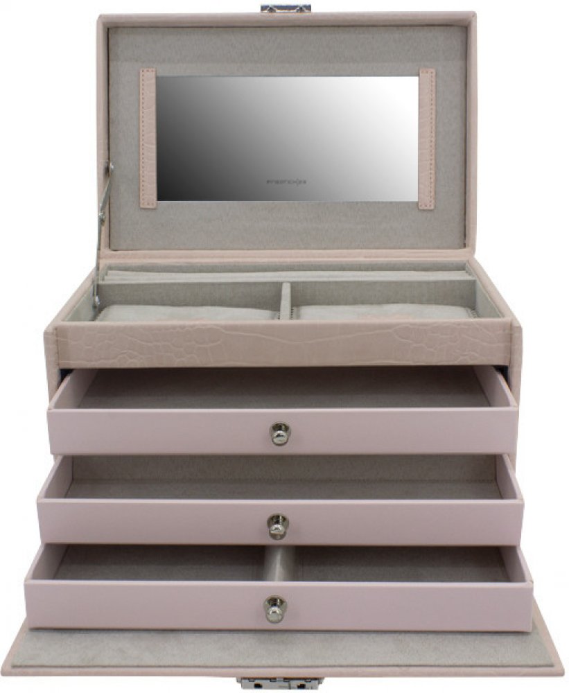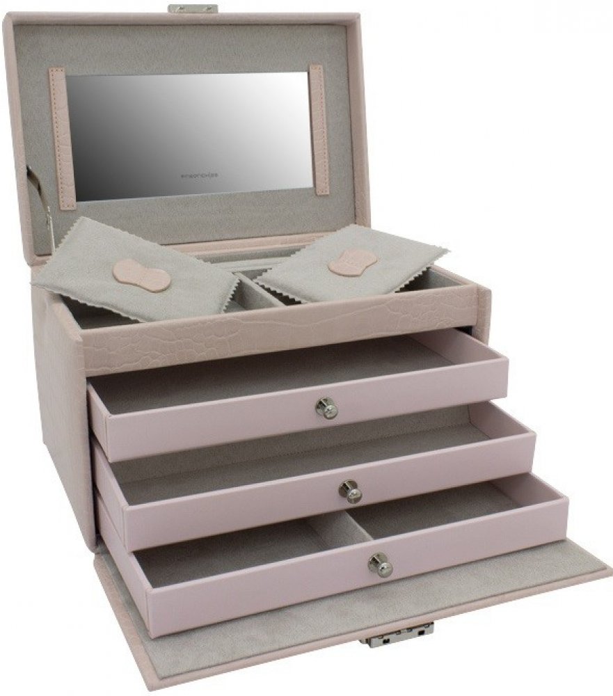 Šperkovnice FRIEDRICH LEDERWAREN je ideální volbou pro bezpečné uložení vašich cenných klenotů a doplňků. Byla zhotovena ze syntetické kůže, proto nabízí elegantní vzhled i snadnou údržbu. Součástí šperkovnice ve formě kufříku je i praktické ucho, což oceníte při častém přenášení vašich pokladů. Díky možnosti uzamčení bude obsah šperkovnice chráněn před cizími osobami. Má 4 patra, tudíž budete mít...