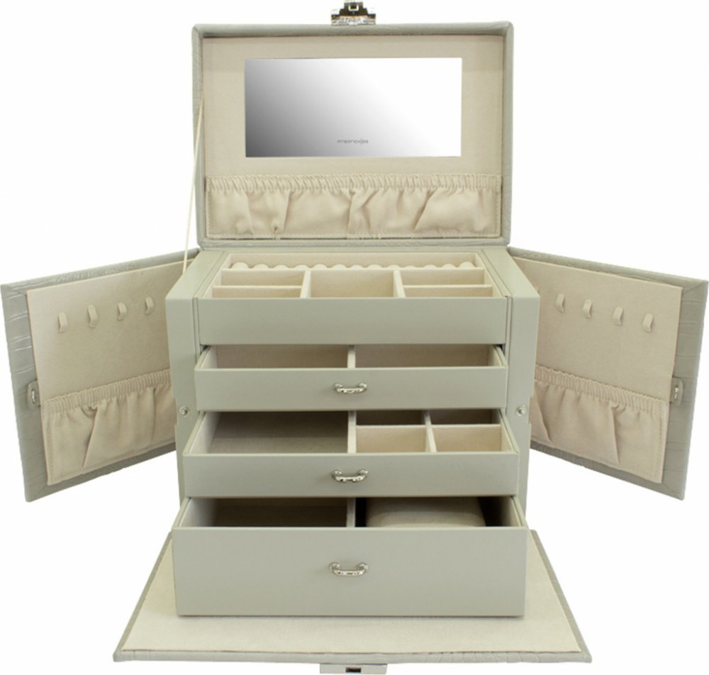 Friedrich Lederwaren syntetická kůže 265 x 185 x 215 mm šedé pro ženy šperkovnice obdélníková na šperky