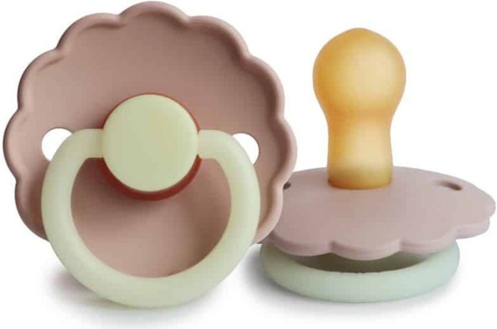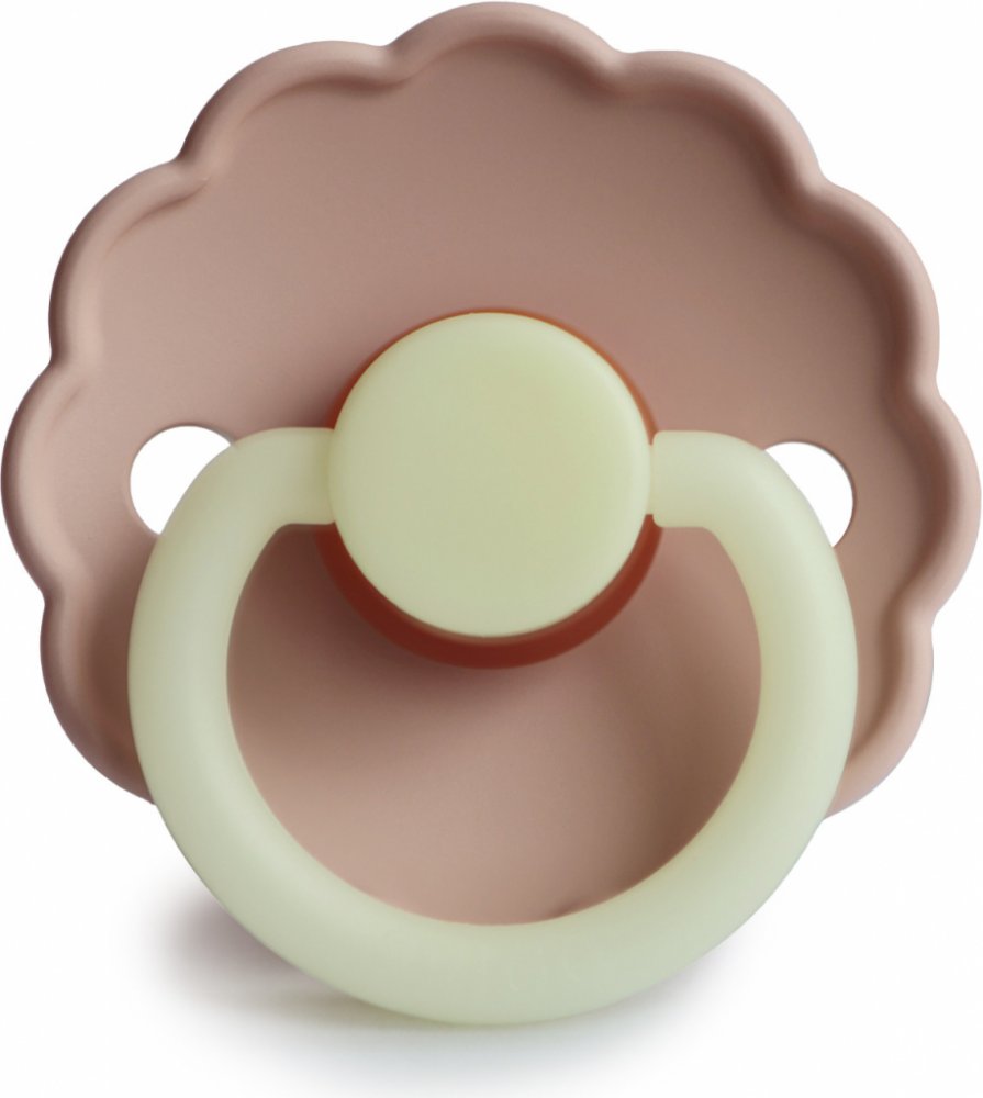 Kaučukový cumlík, vhodný pre deti od 6 mesiacov, svietiaci v tme, so vzorom kvietka.