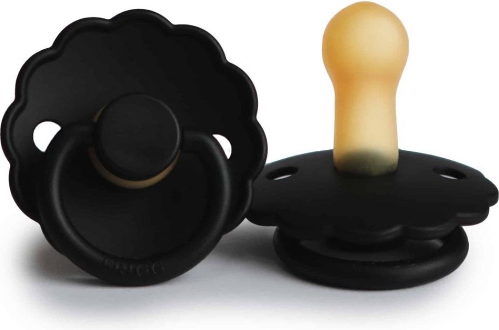 Kaučukový cumlík, vhodný pre deti od 6 mesiacov, so vzorom kvietka.