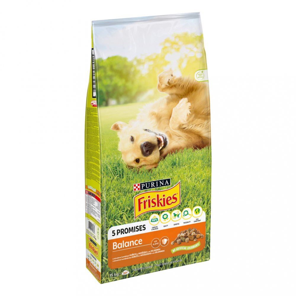 Friskies Balance s kuřetem a zeleninou 15 kg - Kompletní krmivo pro dospělé psy. S lahodnou kombinací kuřete a hovězího a se zeleninou. - Friskies® Balance je zdrojem kvalitních bílkovin a dalších živin, které váš pes potřebuje ke šťastnému rodinnému životu.