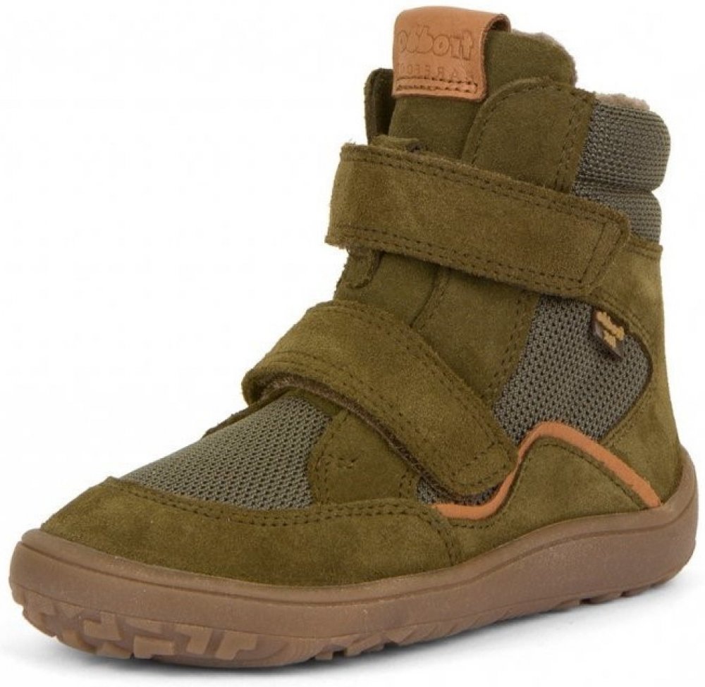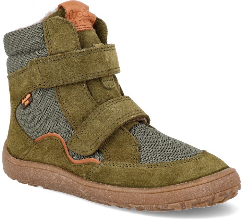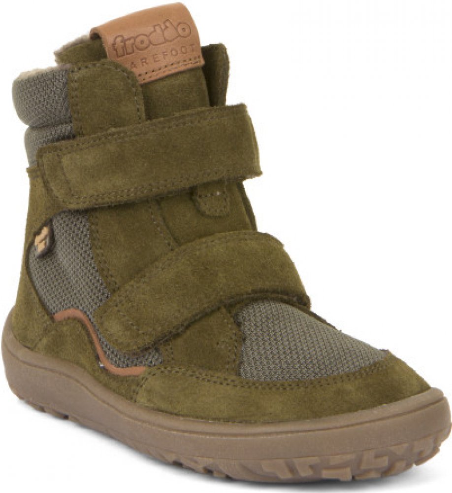Vyšší zimní boty Froddo Barefoot G3160233-2 Olive mají vnější část částečně z kůže pro optimální odolnost a textilních materiálů pro maximální možnou prodyšnost. Nepromokavost zajišťuje membrána Froddo-Tex. Zateplené pravou ovčí vlnou - podšívka i stélka.