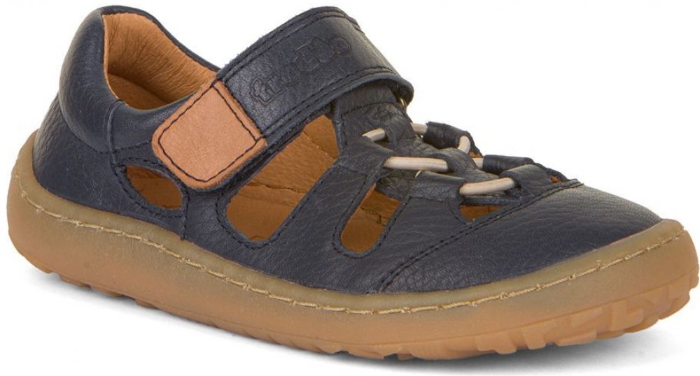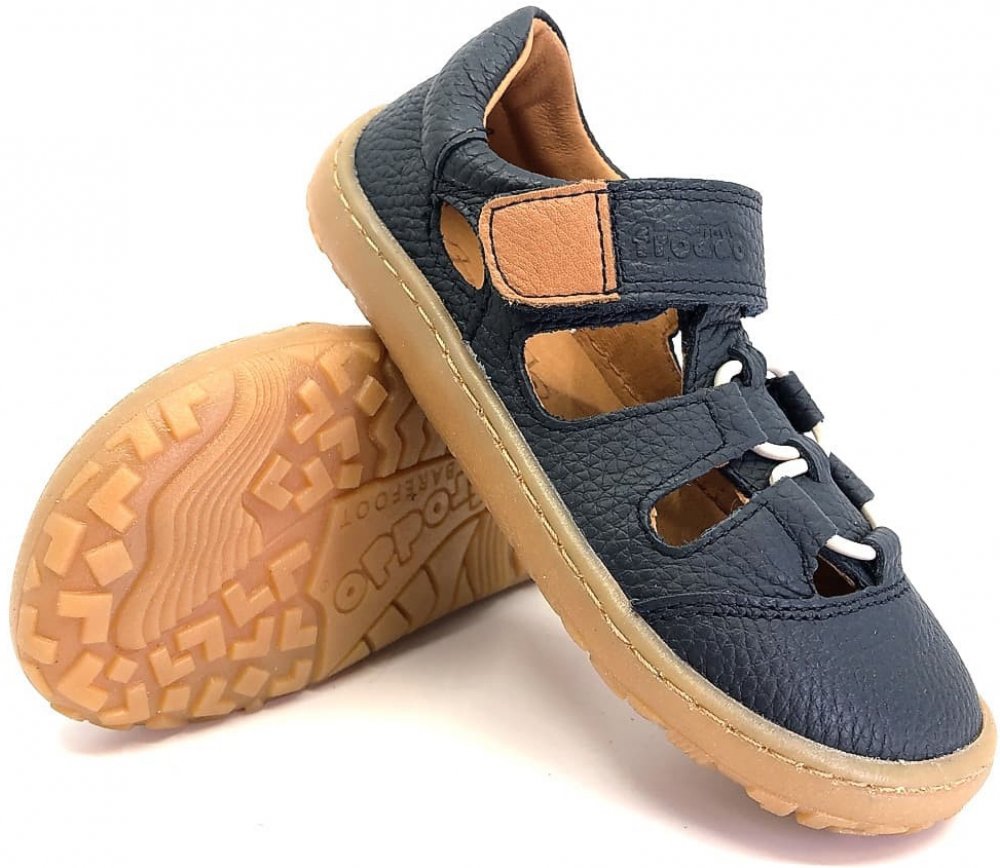 Stylové kožené barefoot sandále Froddo G3150242 Blue se zapínáním na suchý zip pro snadné nazouvání. Ve spodní části je gumička, která ale nelze nijak utáhnout. Pravá přírodně barvená kůže v tmavě modré barvě a podrážka z přírodní gumy s jemným vzorkem. - Sednou na: normální až širší nožky, vhodné i pro dominantní palec a normální nárt, jdou dobře utáhnout i na úzký kotník - Zapínání: suchý zip v ...
