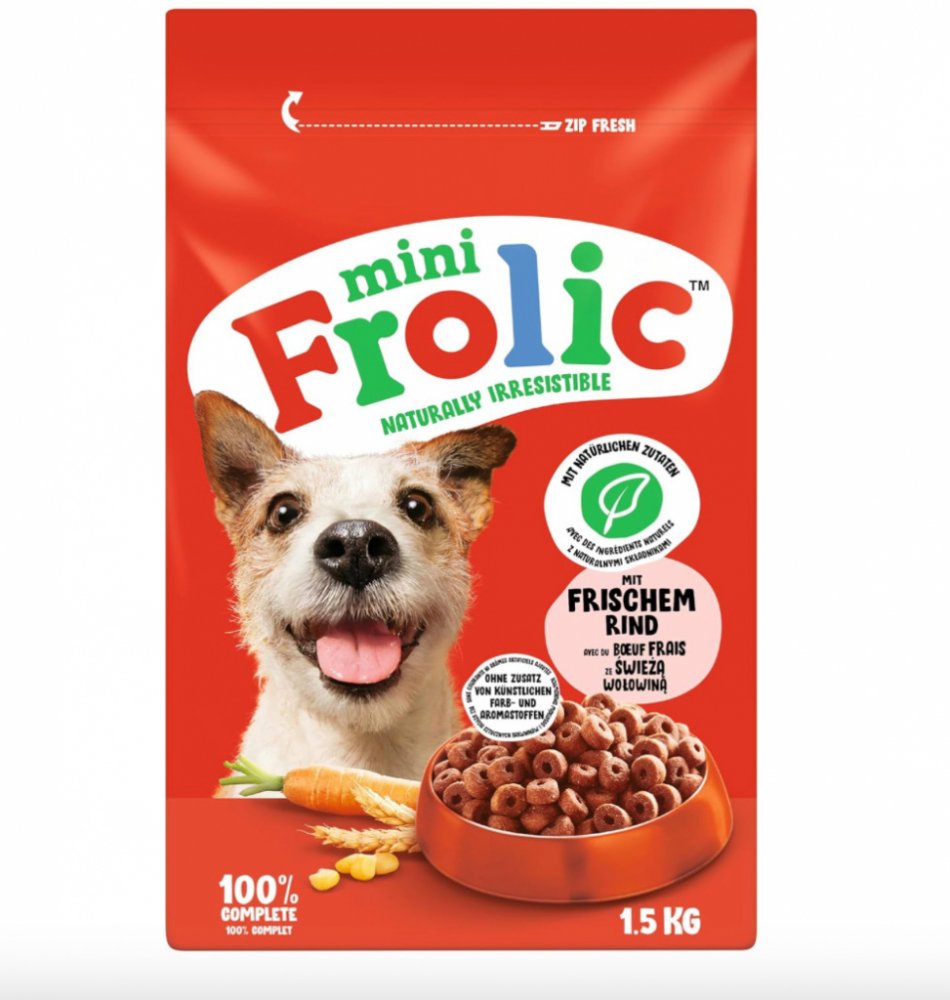 Díky Frolic 100% Complete Mini s čerstvým hovězím poskytnete svému psovi jak vyváženou stravu, tak i chutný pokrm.