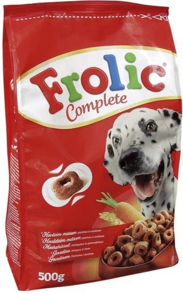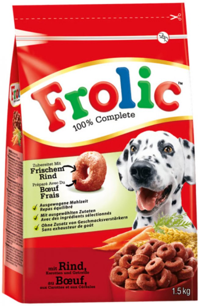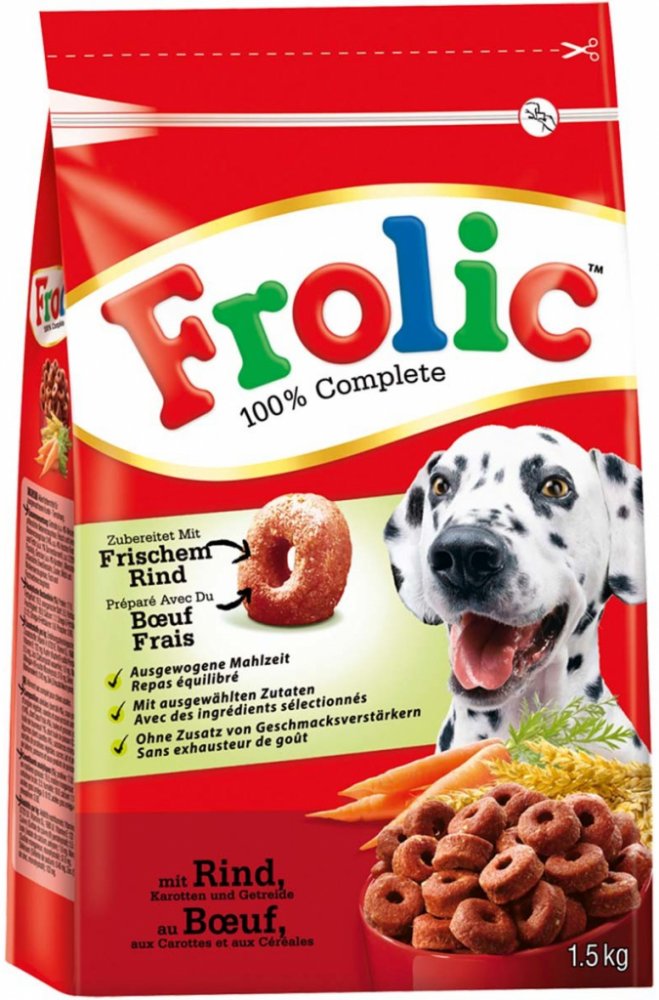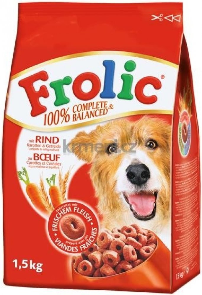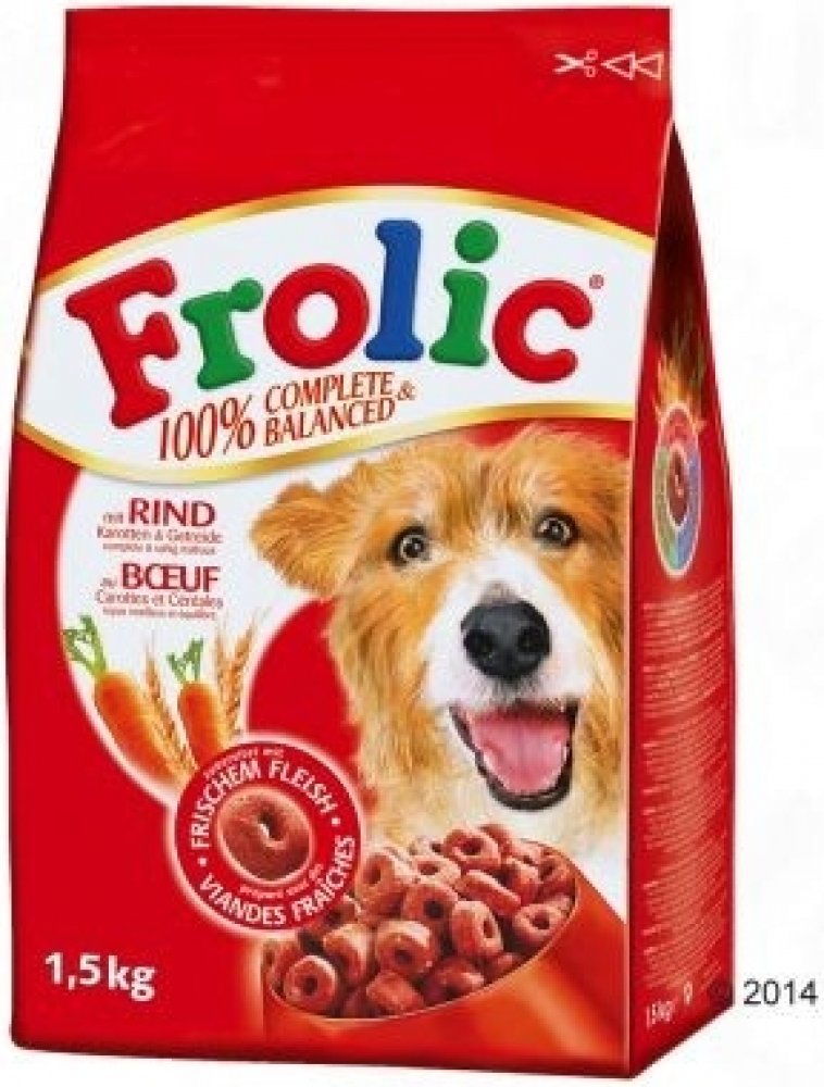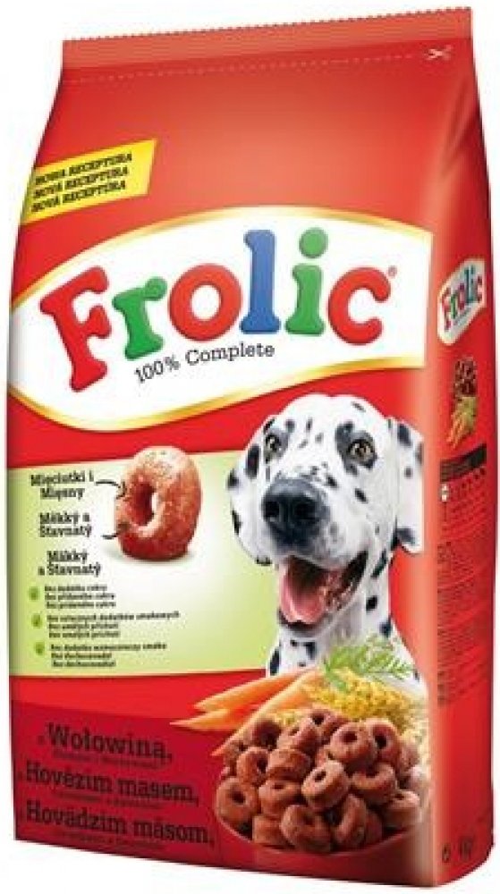Frolic hovězí je kompletní krmivo pro psy použitelné i jako pamlsek. Frolic je vyroben z pečlivě vybraných kvalitních ingrediencí a vyváženého poměru přidaných látek. Čerstvé hovězí je pak kvalitním zvířecím proteinem, který psi jednoduše milují.
