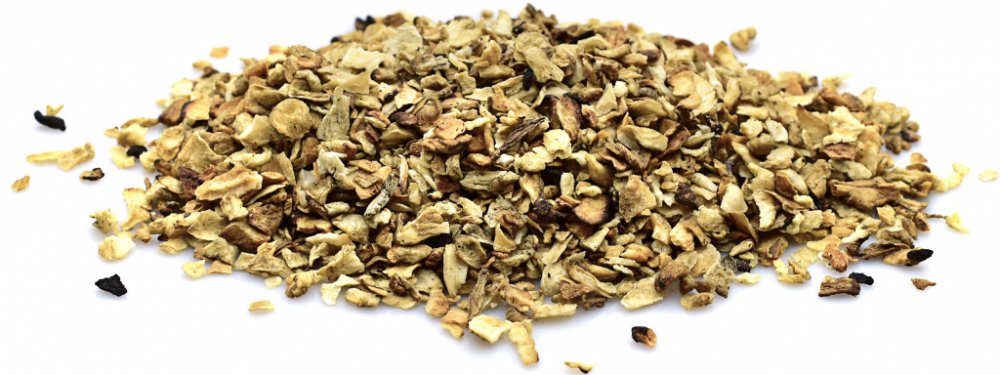 Kořeny důkladně očistěte, nakrájejte na tenké plátky a nechte sušit při teplotě do 40 °C – v sušičce nebo v troubě s pootevřenými dvířky.Když jsou kousky zcela suché a křehké, uchovávejte je v uzavíratelné sklenici na suchém, tmavém místě.
