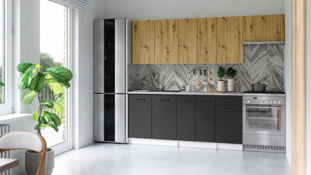 FRONTI Kuchyňská linka ALIMOS 240cm Dub artisan/Grafit