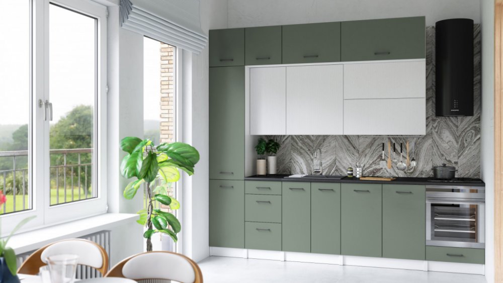 FRONTI Kuchyňská linka DAFNI 280cm Bílá/Olive