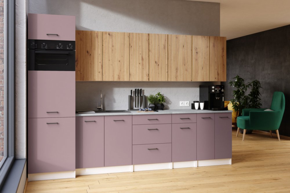 Sestava kuchyňského nábytku PALINI 300 cm je náš návrh na uspořádání vašeho kuchyňského prostoru. Sestava je moderní a zároveň velmi univerzální díky kombinaci skříněk se systémem push to open a velmi šikovné, černé kovové úchytky. Kuchyně se vyznačují minimalistickým designem, kvalitními materiály, pečlivým zpracováním a detaily propracované do nejmenších detailů. Skládá se z 9 samostatných skřín...