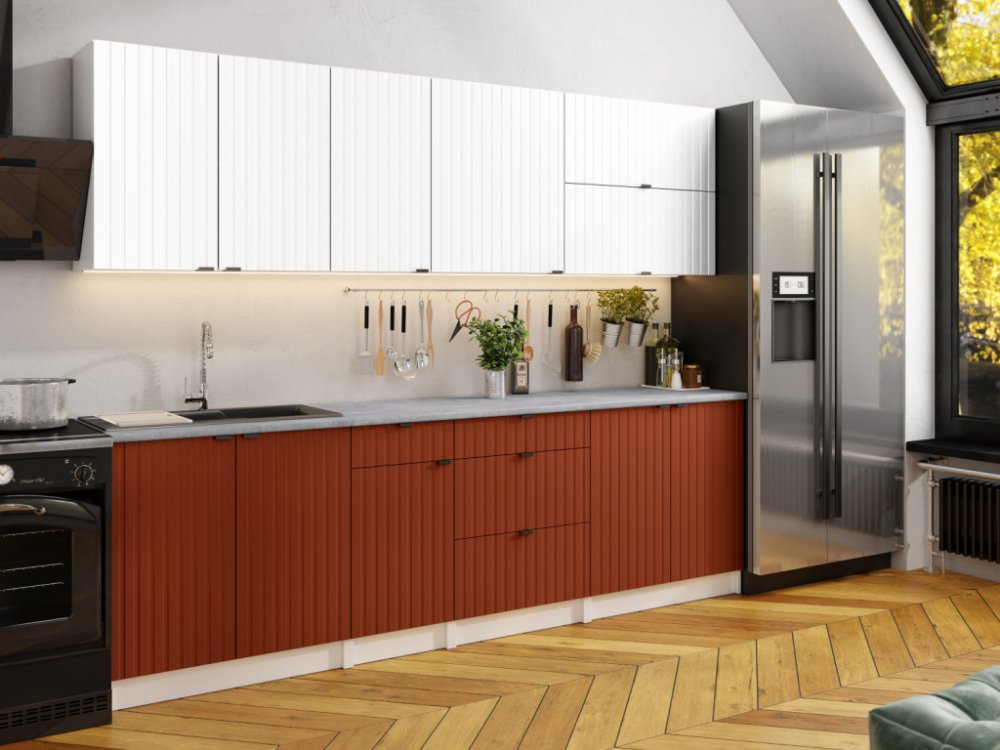 FRONTI Kuchyňská linka PEREA 260 cm Bílá/Brick