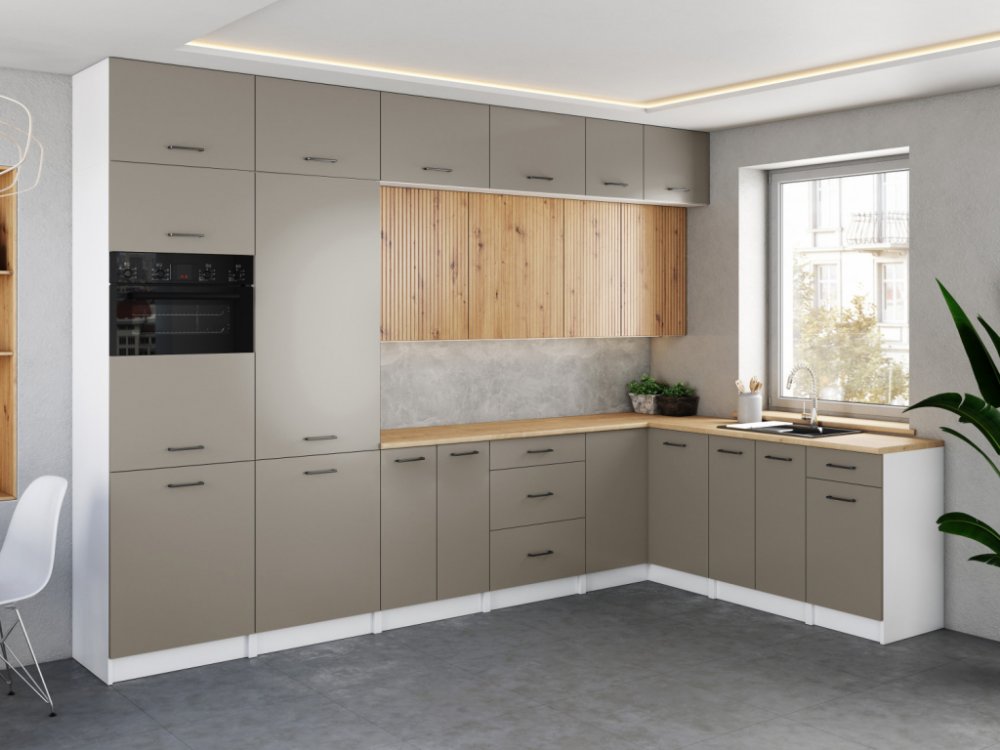 WERIA je náš návrh na rohovou kuchyni z nábytkového systému LAMELLO, u které si můžete vybrat ze čtyř velmi módních nábytkových čel s lamelovou úpravou - CINDY, NELA, GISEL, LETTY. Jedná se o stavebnicový kuchyňský systém, u kterého si můžete vybrat i z úchytek a barev matných čel. Jejich rozmanitost znamená, že kromě námi nabízených sestav si svou vysněnou kuchyni budete moci poskládat i pomocí jednoduchých skříněk.