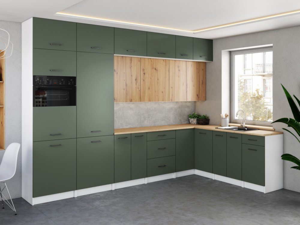 FRONTI Rohová kuchyňská linka WERIA 330x210 cm Olive/Dub artisan