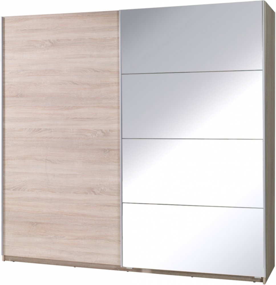 Šatní skříně Twister jsou ideální jak do obývacího pokoje, tak do ložnice. Jsou k dispozici ve třech různých kombinacích čel a ve čtyřech barvách, takže si můžete vybrat šatní skříň, která bude dokonale ladit s vaším interiérem. Čela se zrcadlem opticky zvětší místnost.Nábytek je vyroben z laminované desky, hrany jsou zajištěny ABS hranou. Ve skříních se používají hliníková vodítka Hettich. Hliníkové boční profily. Tloušťka korpusu a čel je 16 mm.