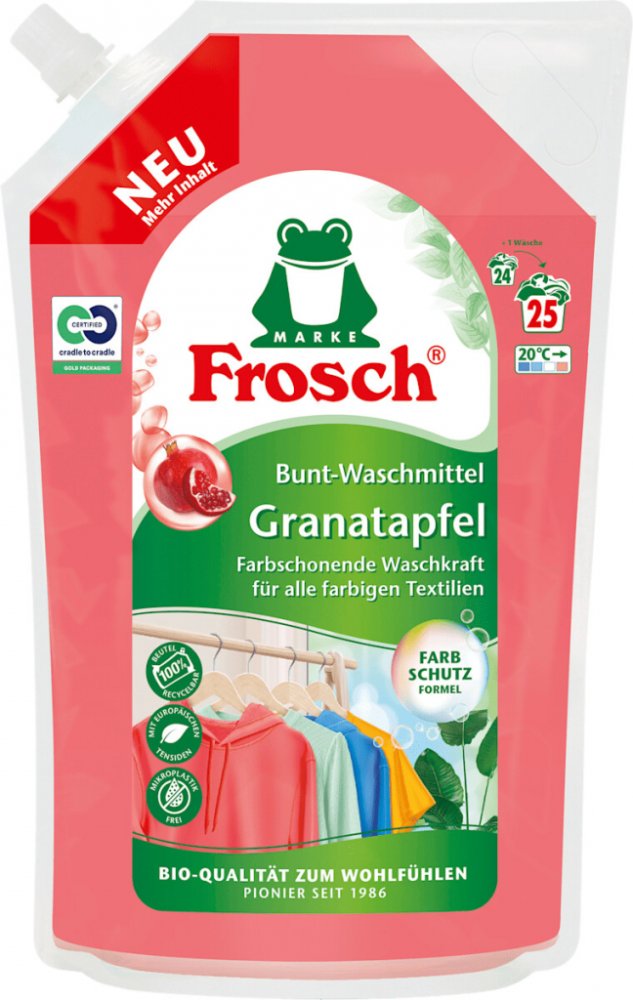 - Určeno pro praní v pračkách i pro ruční praní. Kombinace přírodní, vysoce účinné mycí síly a šetrné k životnímu prostředí a pokožce dělá z Frosch ekologického průkopníka v oblasti čištění a péče.