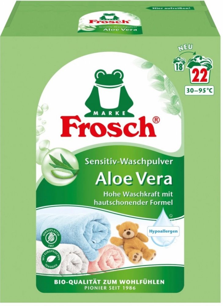 Frosch Prací prášek s aloe vera pro citlivou pokožku 1,45 kg, 22 dávek: Šetrná Péče pro Vaše Prádlo a Pokožku