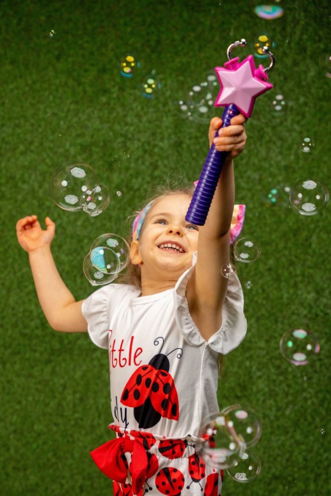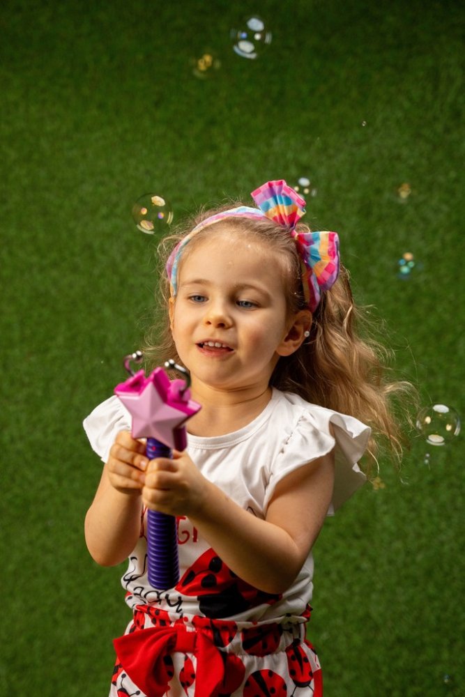 Zábavná sada Fru Blu s lapačem bublin ve tvaru hvězdy a roztokem 400 ml promění každé odpoledne v show plnou bublin. Hvězdička automaticky počítá zachycené bubliny a po 30 vteřinách nahlásí celkový počet v angličtině. Skvělá aktivita pro děti i rodiče, která rozvíjí soutěživost i spolupráci.Sada Fru Blu je ideální pro malé i velké milovníky mýdlových bublin. Díky speciálnímu hvězdicovému lapači dě...