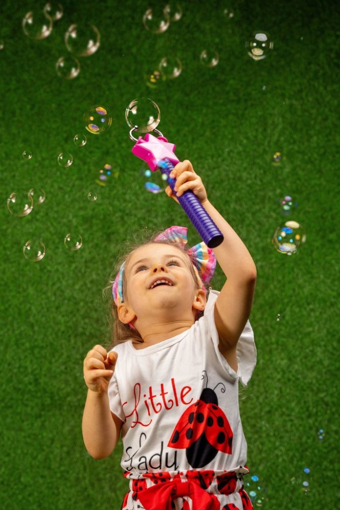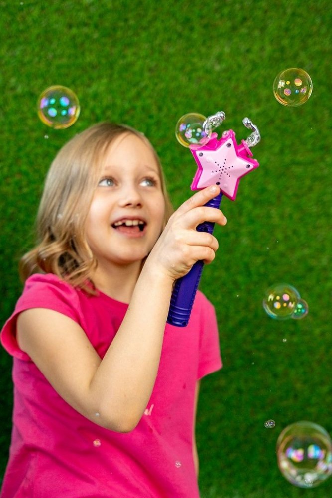 Zábavná sada Fru Blu s lapačem bublin ve tvaru hvězdy a roztokem 400 ml promění každé odpoledne v show plnou bublin. Hvězdička automaticky počítá zachycené bubliny a po 30 vteřinách nahlásí celkový počet v angličtině. Skvělá aktivita pro děti i rodiče, která rozvíjí soutěživost i spolupráci.Sada Fru Blu je ideální pro malé i velké milovníky mýdlových bublin. Díky speciálnímu hvězdicovému lapači děti bubliny nejen chytají, ale také sledují, kolik jich zvládly pochytat. Stačí ponořit kruhový nástroj ve tvaru stromku do misky s roztokem a nechat vítr vytvořit oblaka velkých bublin.Lapač ve tvaru hvězdy automaticky počítá každou zachycenou bublinu a po 30 sekundách ohlásí celkový výsledek v angličtině, což motivuje děti k dalšímu hraní a zlepšování. Sada podporuje rodinnou zábavu, soutěžení i týmovou spolupráci.Co najdete v balení:- lapač bublin ve tvaru hvězdy s funkcí počítání- kruhový nástroj ve tvaru stromku pro tvorbu bublin- miska na roztok- 400 ml kvalitního roztoku Fru Blu pro velké a odolné bubliny- napájení: 2× AAA baterie (nejsou součástí balení)SpecifikaceObjem roztoku400 mlObsah baleníKruhový nástroj ve tvaru stromku, miska na roztok, lapač bublin ve tvaru hvězdyFunkceAutomatické počítání zachycených bublin, hlasové oznámení výsledku v angličtině po 30 sPožadované baterie2 × AAA (nejsou součástí balení)VěkVhodné pro děti od 3 letVýrobceTM ToysEAN5908273000213