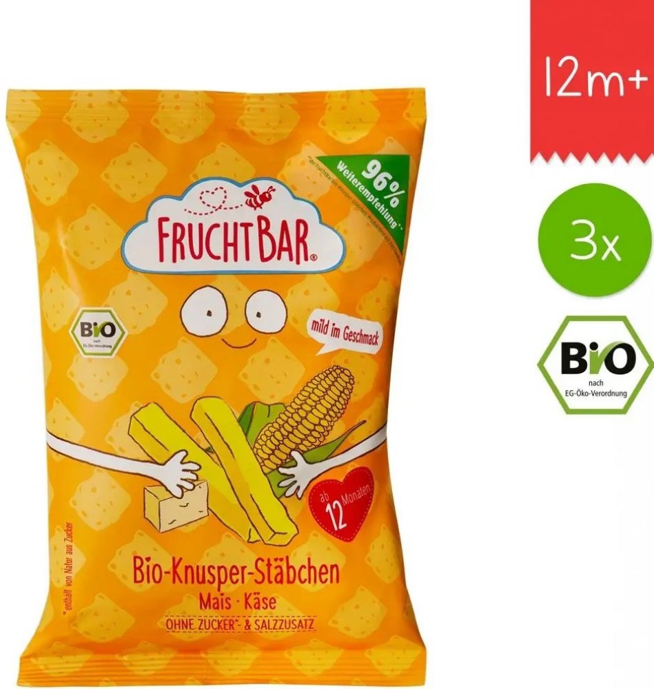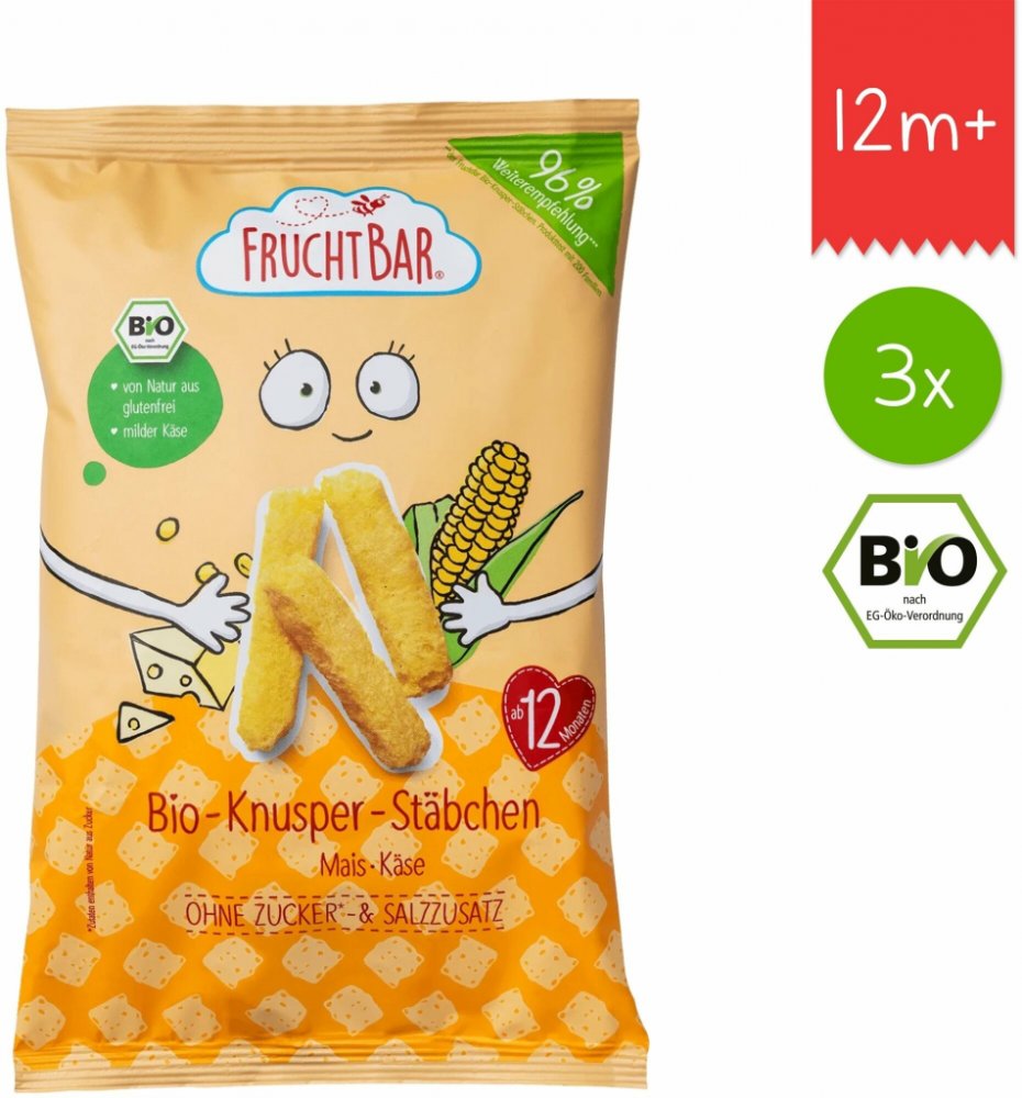 FruchtBar Bio Kukuřičné křupky se sýrem nesolené 3x30g