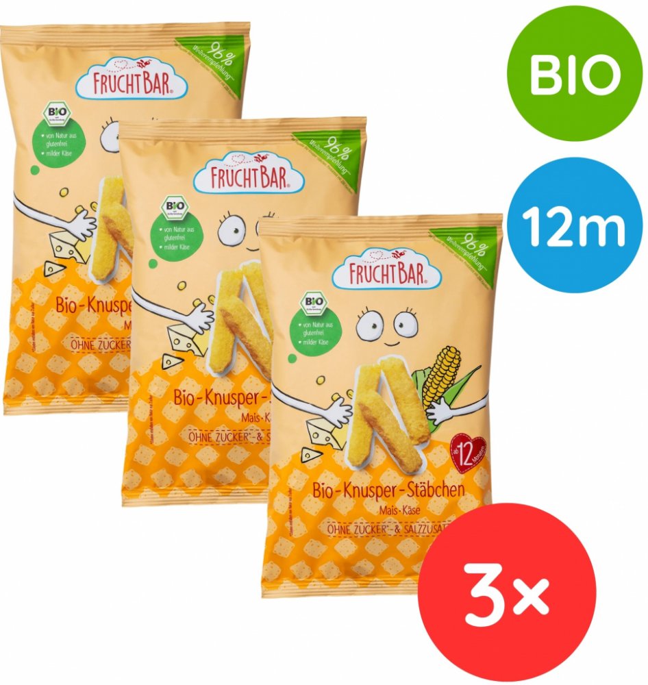 FruchtBar BIO Kukuřičné křupky se sýrem nesolené 3 x 30 g