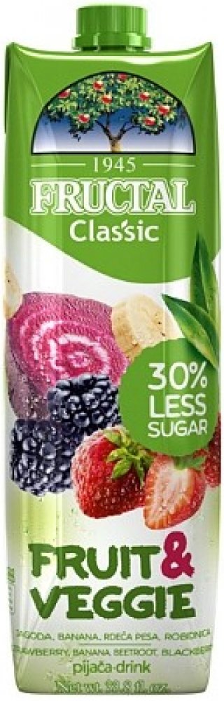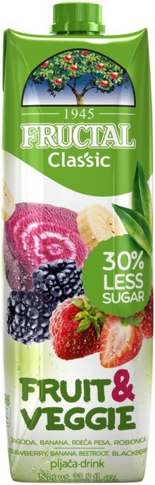 Fructal fruit & veggie jahody banány červená řepa a ostružiny 1000 ml