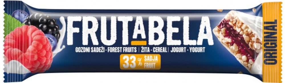 Složení: ovocné složky 33 % (višňová, jablečná, jahodová (10 %), dřeň, malinová a borůvková ovocná šťáva z koncentrátu (2% jako šťáva), ostružiny )1 %)), jogurtová poleva 33 % (cukr, palmový tuk, sušené polotučné a plnotučné mléko, sušený jogurt 2 %, emulgátor (sójový lecitin), aroma, pšeničný a ječný slad, kuchyňská sůl), zvlhčující látky (sorbitol, glycerol), kukuřičné lupínky 5 % (kukuřice, cukr, kuchyňská sůl, ječný slad), ovesné vločky 4,9 %, palmový tuk, modifikovaný škrob, aromata, emulgátor (estery sacharózy s mastnými kyselinami), kyselina (kyselina citronová).Může obsahovat stopy arašídů a skořápkových plodů. Uchovejte v suchu a chladu.