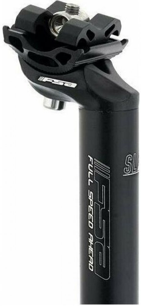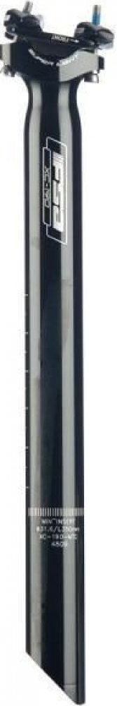 3D kovaný a CNC obráběný hliník 6066 jednošroubové uchycení sedla Micro Adjust šroub CrMo černá povrchová úprava laserem zhotovená grafika průměr 27,2 mm délka 350 mm hmotnost 310 g (váženo)
