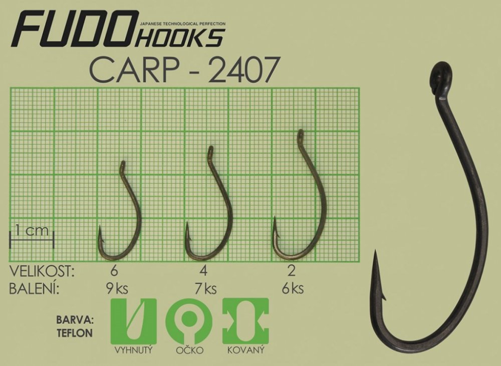 Ultra pevné kované háčky Fudo jsou vyrobeny v Japonsku z vysokouhlíkové oceli. Prvotřídní záseky garantuje velice přesně tvarovaný hrot s rychlým a přesným průnikem, antikorozní ochrana a vysoký stupeň pružnosti. Ryba která jednou tento háček nasaje, z něj nebude mít úniku. Tento háček pronikne její tlamou rychlostí střely.