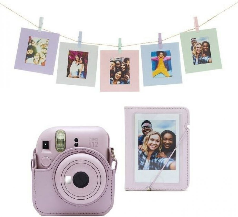 Instantní fotoaparát pro okamžité snímky • Inovovaný design příjemný do ruky • Fotografie velikosti typu Instax Mini (86 x 54 mm / 62 x 46 mm) • Elektronická závěrka: 1/2 až 1/250 sec • Minimální zaostřovací vzdálenost: 30 cm • Dosah blesku: 30 cm - 2,2 m • Dosah blesku: 30 cm - 2,2 m • Hledáček se zvětšením 0,37x • Výdrž: tužkové baterie 2 x AA (LR6) na cca 100 snímků • Selfie mód • Makro snímky • barva: fialová • megapack obsahuje pouzdro, barevné kolíčky a fotoalbum.